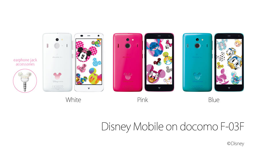 From its colorful design concept to its rich library of preinstalled content, Disney Mobile on docomo F-03F is packed to the brim with the magic of Disney. F-03F is the fifth model to be introduced from the Disney Mobile on docomo series.